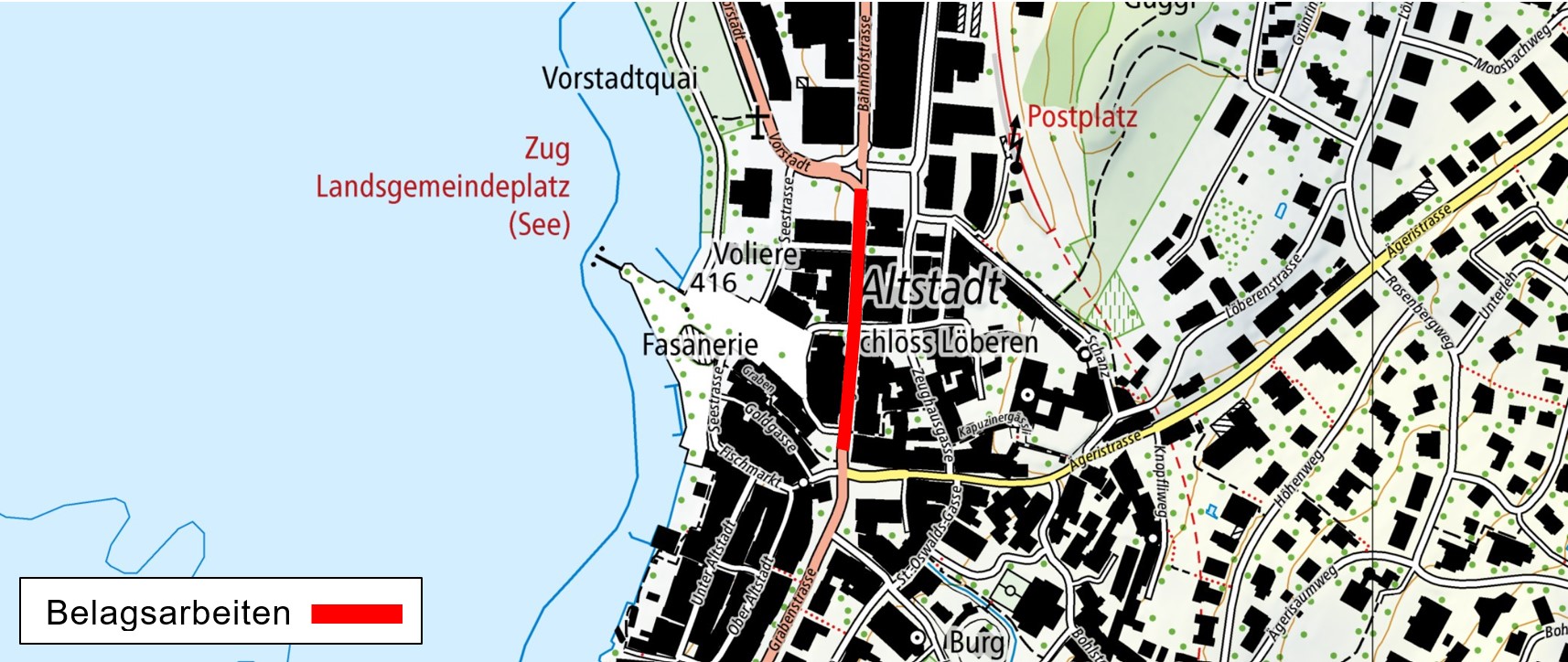 Belagsarbeiten im Abschnitt Postplatz bis Kolinplatz, Zug